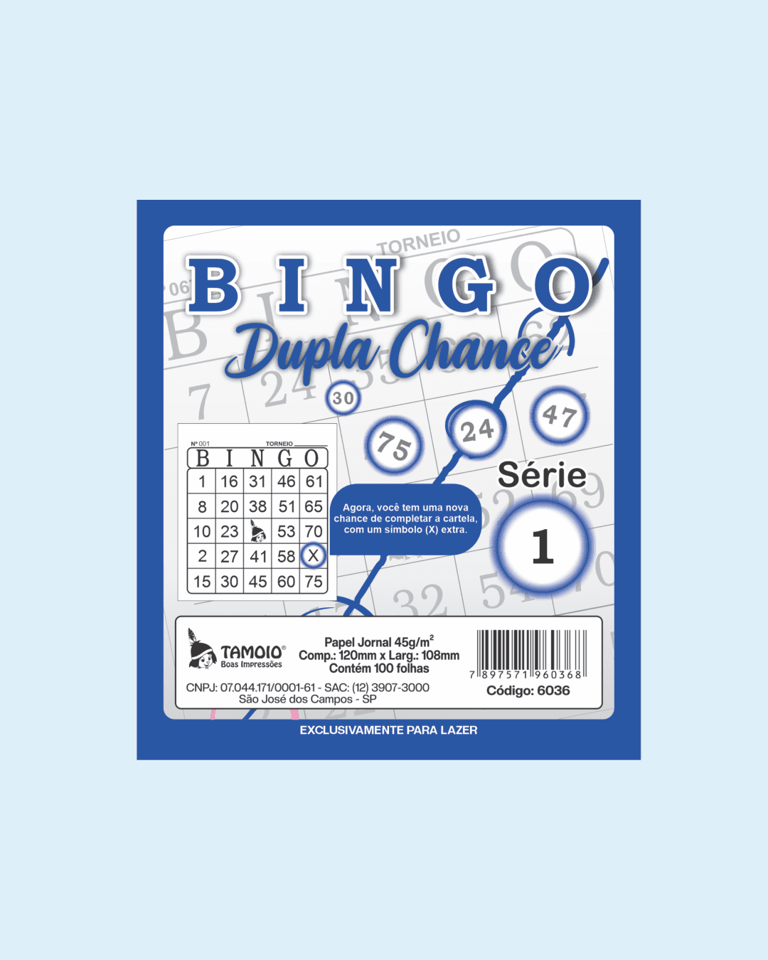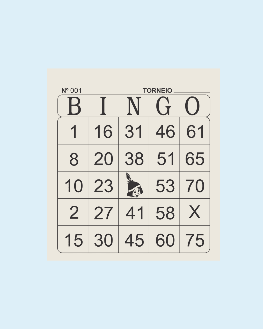 Cartela inovadora com símbolo “X” extra, aumentando as chances de completar o jogo e deixando a partida mais dinâmica e divertida.